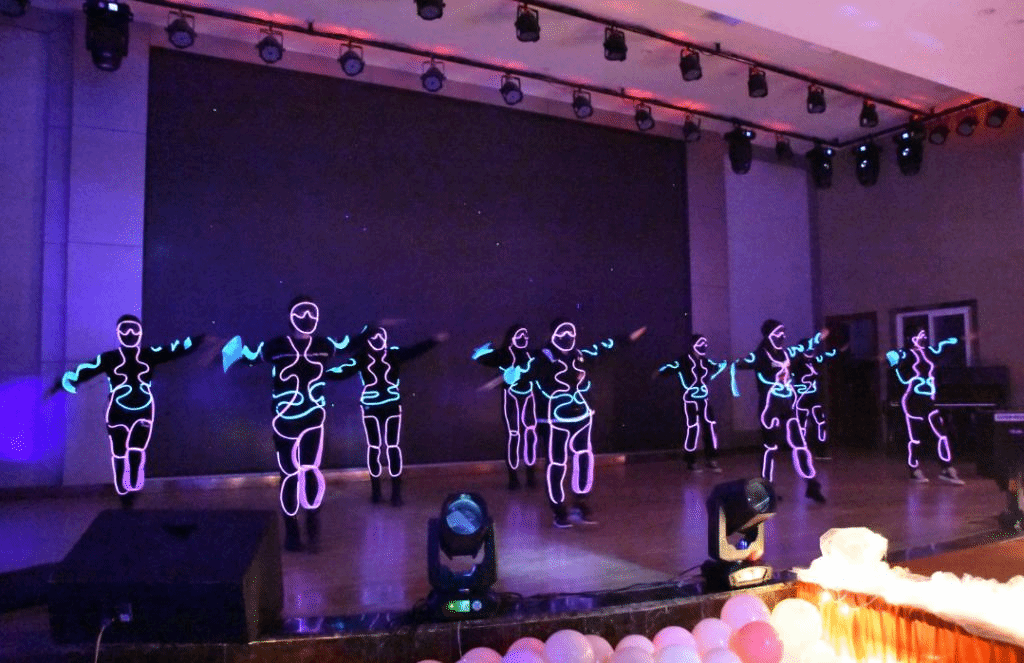 鼓乐齐鸣,44118太阳成tyc城集团花鼓队的特色演出拉开了本次晚会的序幕,清脆的鼓声,点燃外院学子的青春热情;充满创意的荧光舞《暗夜精灵》,舞动的身影、跳跃的光线,为观众们带来一场视觉盛宴。