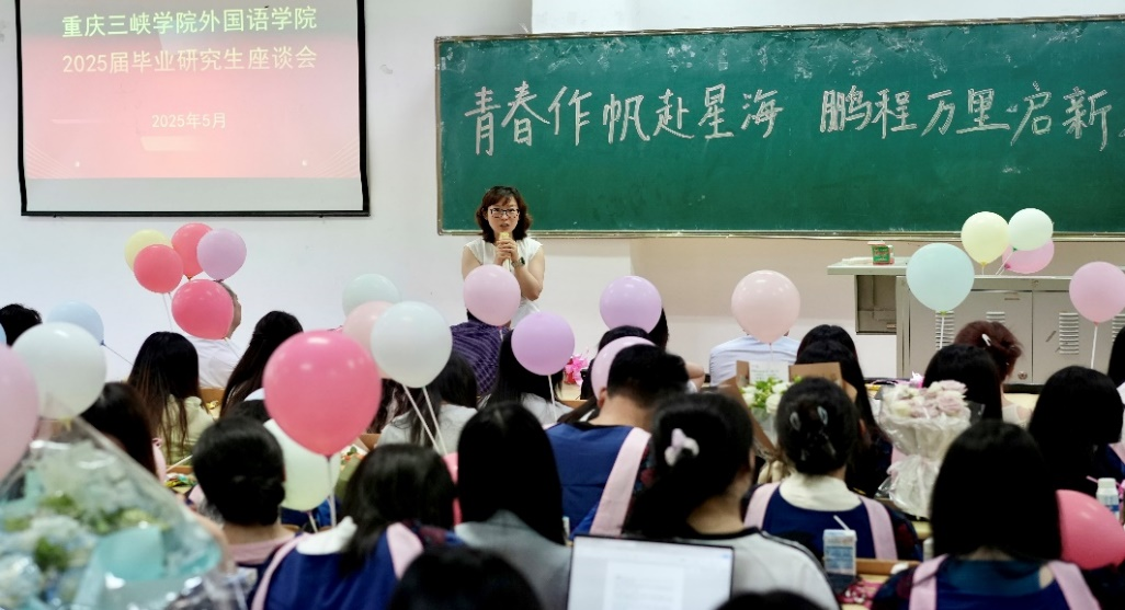上午10时,座谈会在温馨的氛围中拉开帷幕。教室内“青春作帆赴星海,鹏程万里启新篇”的寄语格外醒目,五彩气球装点会场,为离别时刻增添了一份暖意。