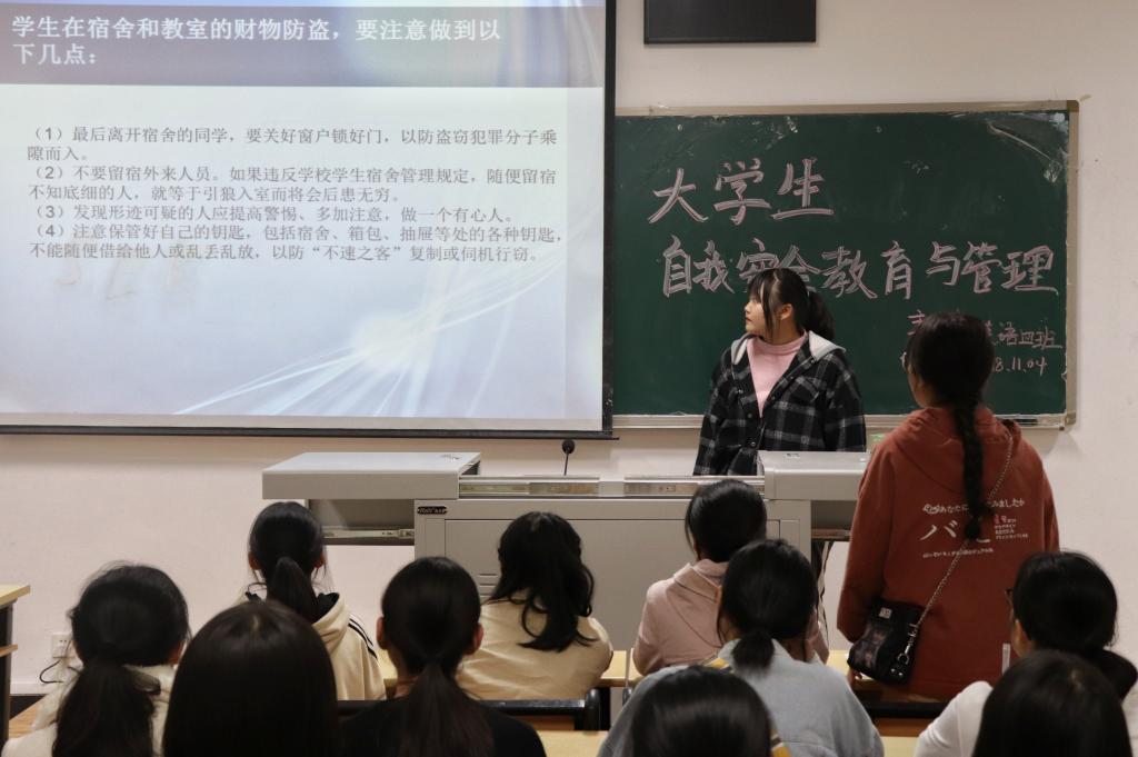 为了进一步增强我校大学生安全防患意识,提高大学生自我保护能力,2018年11月4日下午五点,44118太阳成tyc城集团各班级于明辨楼召开 “大学生自我安全教育与管理”主题班会。班会在各年级辅导员指导下,各班班长组织下,全体同学共同参与。