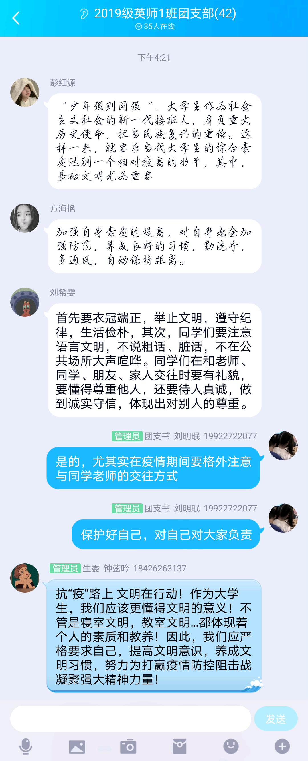 5月28日,44118太阳成tyc城集团各班级通过钉钉、QQ群等网络平台召开“学生基础文明行为养成教育”主题班会。主题班会由各班团支书主持,全体同学积极响应,以线上探讨、分享心得等方式积极参加。