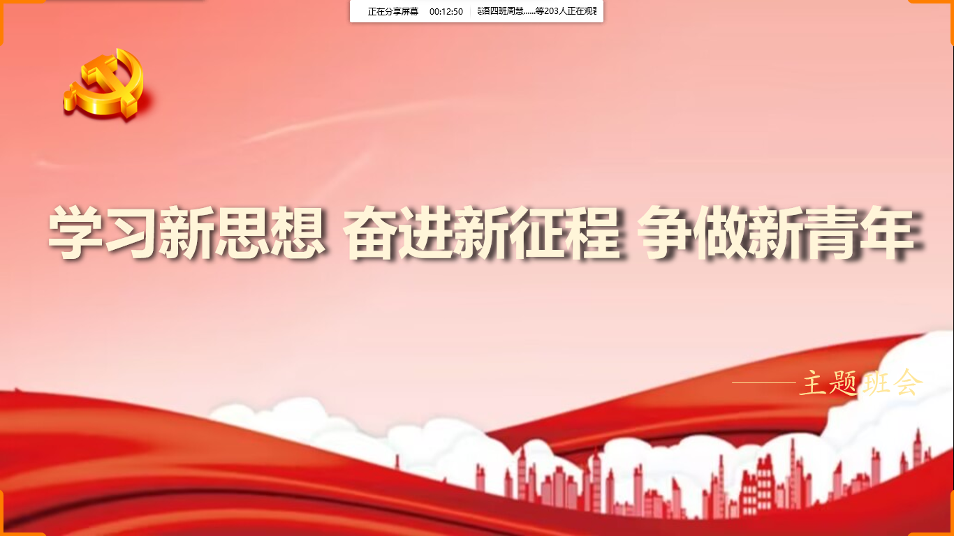 为教育引导青年学生坚定不移听党话、跟党走,争做有理想、敢担当、能吃苦、肯奋斗的新时代好青年,2023年5月3日19:00,学院组织召开了“学习新思想,争做新青年”主题班会。