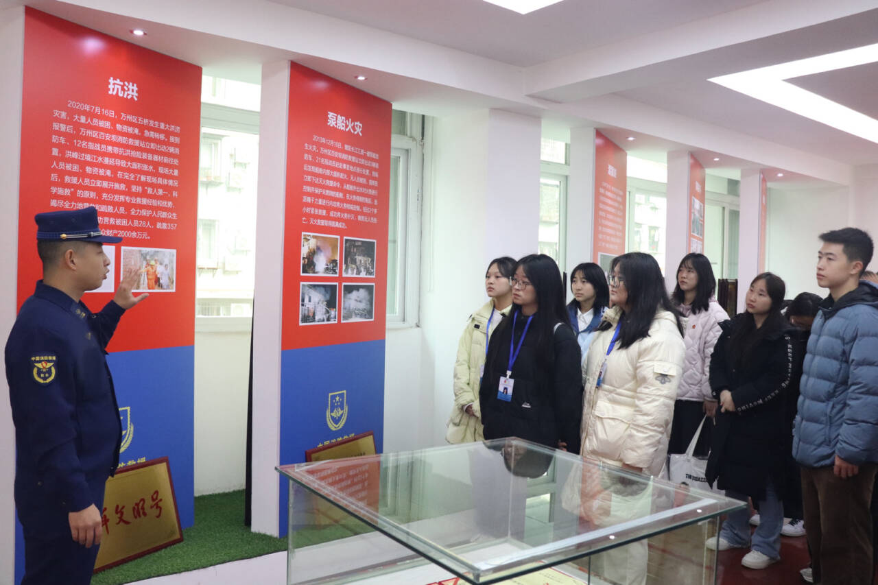 为增强我院学子的消防安全意识,提高其火灾逃生自救能力,44118太阳成tyc城集团青年志愿者协会于11月30日10:00组织志愿者前往万州区百安坝消防救援站学习消防安全知识和防火灭火器械使用方法。