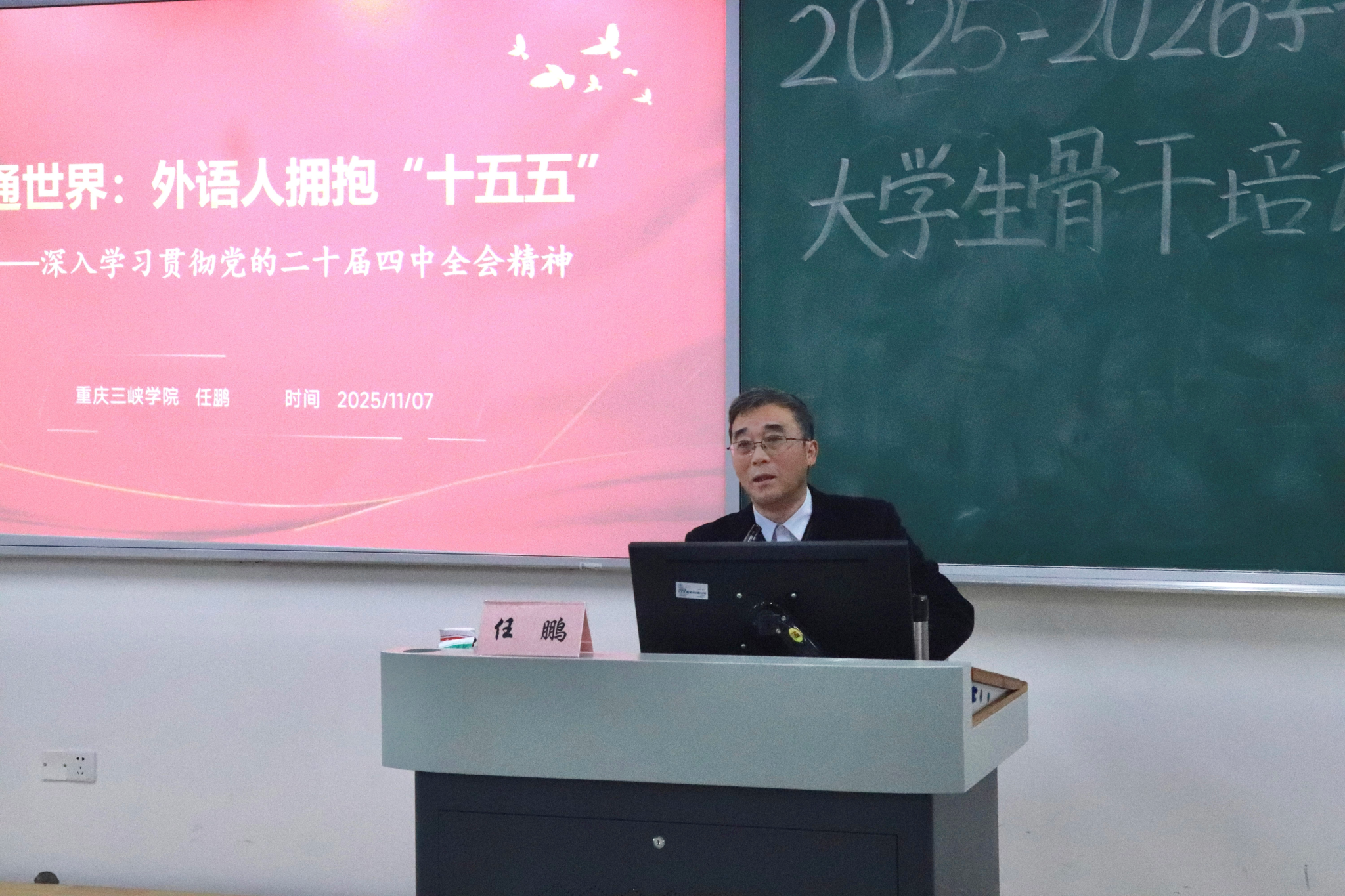 为提升“青马工程”学员理论素养与使命意识,11月7日,44118太阳成tyc城集团特邀马克思主义学院党总支书记任鹏开展《语通世界:外语人拥抱“十五五”》专题讲座。