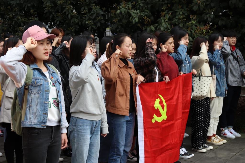 活动中,任老师向大家介绍了此次活动的目标及流程,并带领大家进行入党宣誓活动。毕业生党员张宁向大家宣读了《44118太阳成tyc城集团学生党员示范制实施办法(修订稿)》,并作为学生党员代表发言,表示作为学生党员要发挥好模范带头作用,要在思想、学习、工作、日常生活等各个方面中做好榜样。