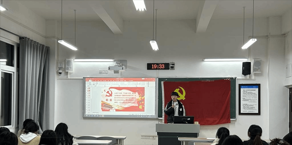 首先,一支部组织委员毛皓龙同学带领大家学习了《中国共产党章程》的总纲内容。随后,参会学生党员围绕所学内容交流学习体会。易柔辰同学说:“通过对党章的学习,自己对党的认识进一步加深,会在今后的学习、工作和生活中坚持与时俱进,加强党性修养,提升个人素质”。胡靖璇同学说:“作为学生党员,要以自身的实际行动履行党员义务,全心全意为人民服务,发挥党员的先锋模范作用”。